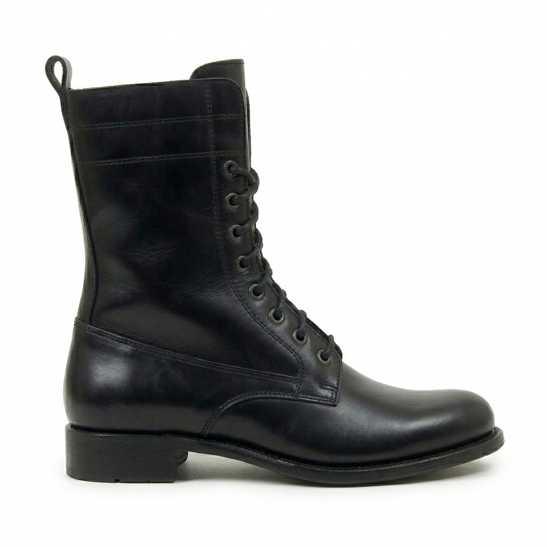 CATANIA Stivaletto in vera pelle nero con laccetto