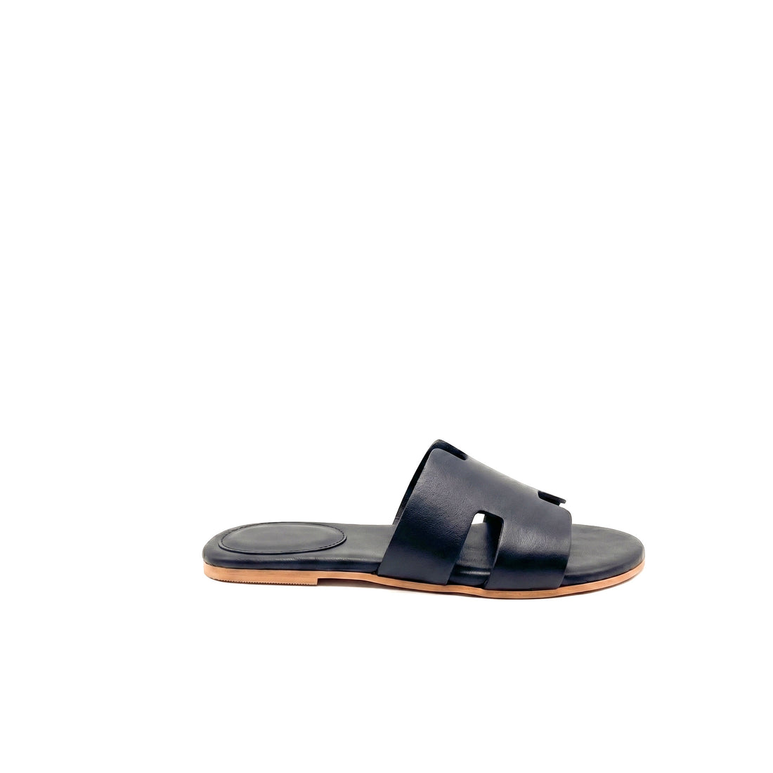 KIMI Sandali infradito bikini con borchie In Vera Pelle Nero Donna Made in Italy